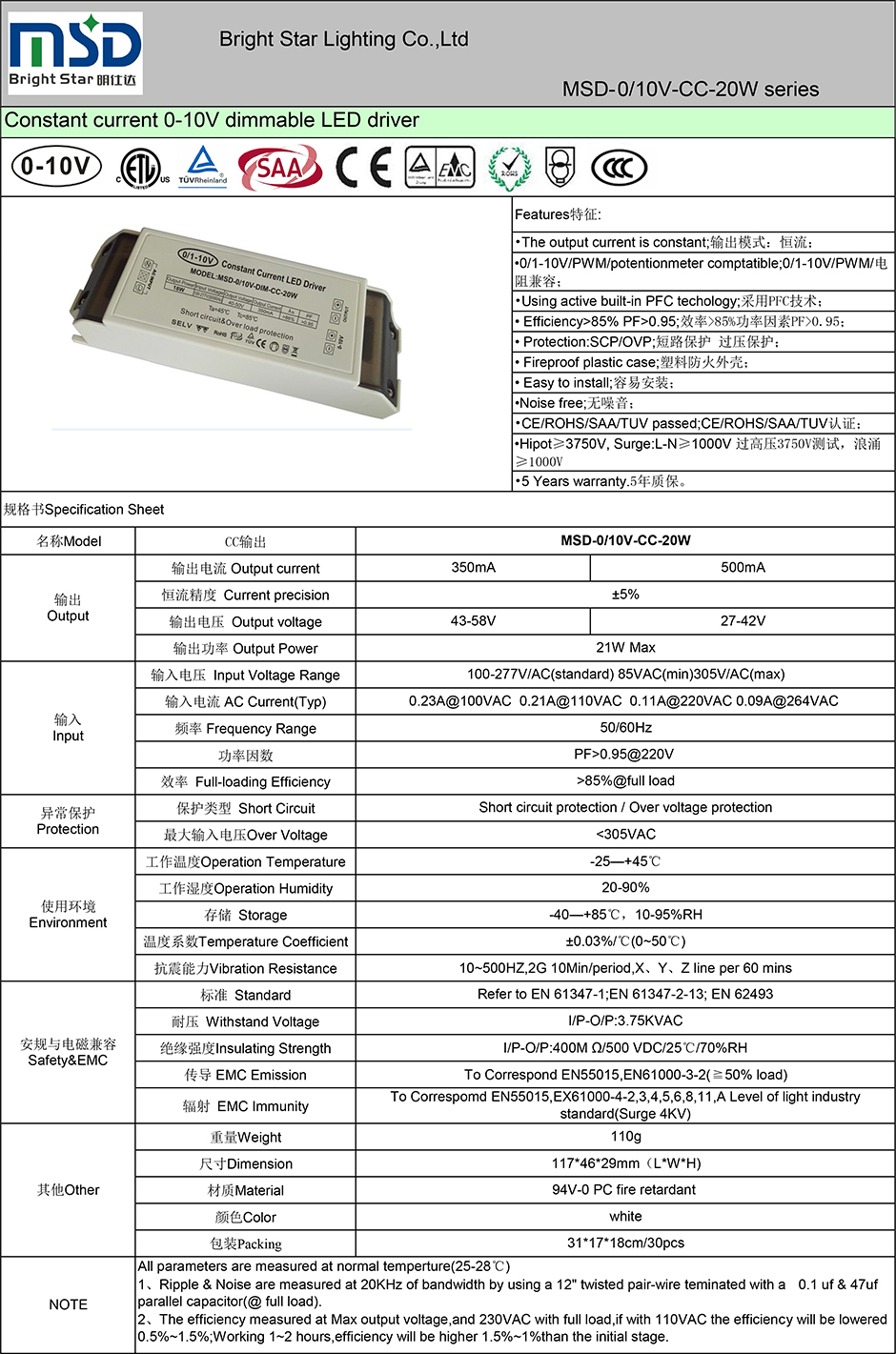 ● CE/ROHS/SAA/TUV/ETL/CCC认证